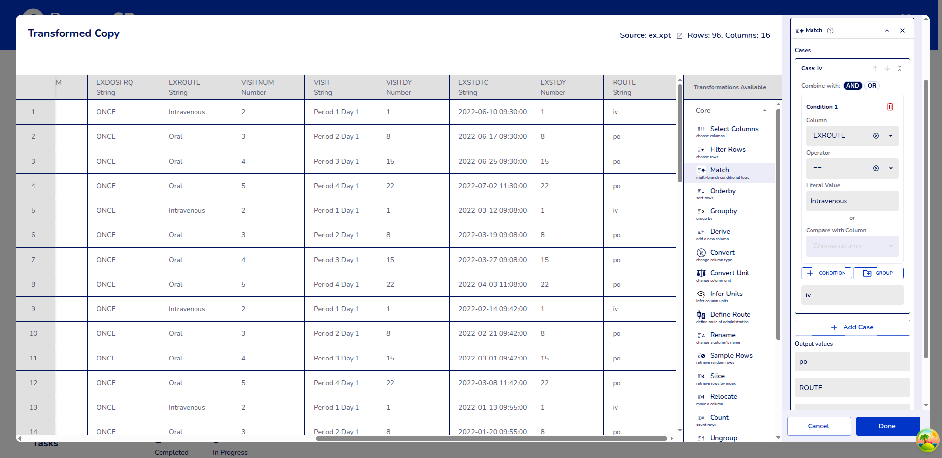 EXROUTE== "Intravenous", then output "iv" - Default: "po"